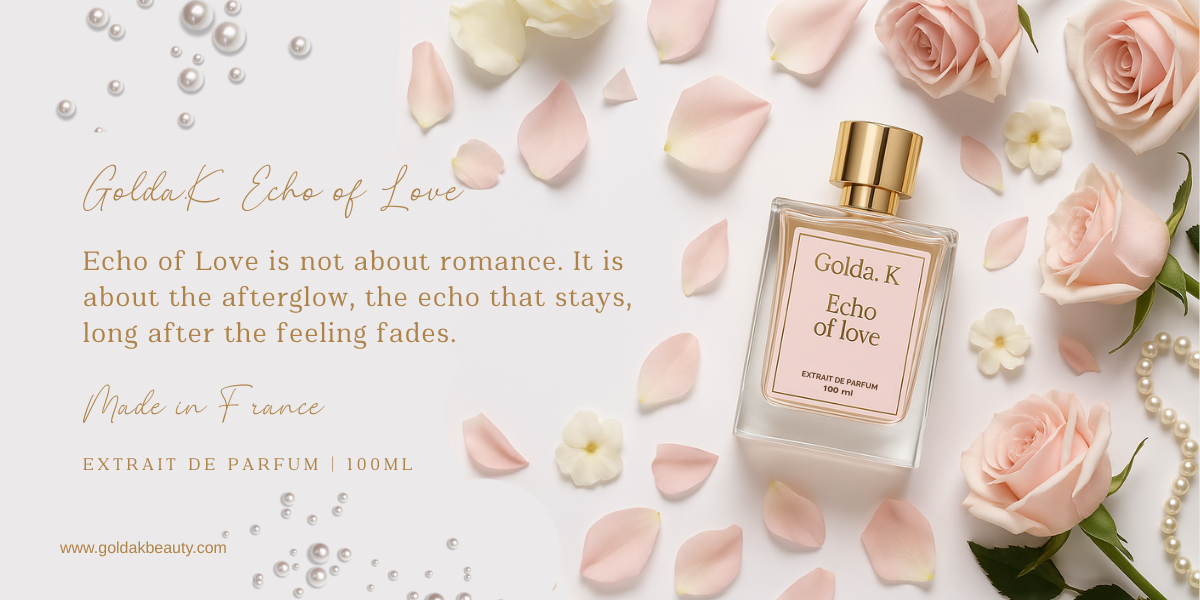 Golda.K Echo of Love is a fragrance suspended between memory and sensation—delicate as breath, soft as sunlight on skin.